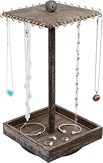 Ikee Design 木製回転ジュエリーオーガナイザー 回転ジュエリータワー ネックレス&ブレスレット用 回転ネックレスホルダー ショー用ジュエリースタンド 幅7 7/8インチ x 奥行7 7/8インチ x 高さ16 1/2インチ