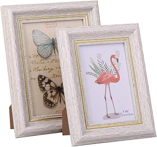 結婚式 受付 ウェルカム スペース 用 アンティーク 木目ホワイト 写真立て 2サイズセット(ハガキ / 2L) フォト フレーム