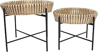 Bloomingville 竹ラップテーブル 取り外し可能なトレイと金属製の脚 (2サイズセット) トレイ ベージュ