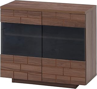 不二貿易 キャビネット 幅80cm ミディアムブラウン スモークガラス 中身が見えにくい レンガ調 可動棚 ブリック 99302