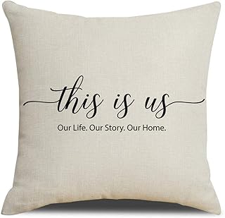 PSDWETS This is Us,Our Life,Our Story,Our Home インスピレーショナルな引用 コットンリネン ピローカバー 18 x 18インチ 素朴なモダンな農家の装飾に 新築祝いの贈り物に最適