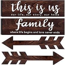4ピース This is Us Our Life Our Story 素朴な壁木製サイン ファミリー木製サイン デコレーション 15 x 4 x 0.2インチ プリント ファミリー木製サイン 素朴な木製矢印サイン ホームベッドルーム リビングルーム用 (ブラウン)