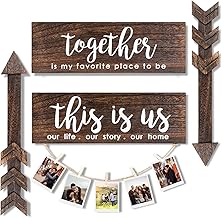 2ピース ホームデコレーションサイン This is Us Our Life Our Story 素朴な木製サイン一緒に素朴な木製ウォールアートサイン ファームハウス玄関サイン ベッドルーム、リビングルームの装飾用 4.7 x 13.8インチ(ピンクグレー)