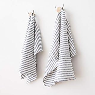 リネン100%大判キッチンタオル 46cm×65cm 1枚 洗濯機洗い出来ます便利な紐かけ付き!大判サイズなのでキッチンのお皿洗いにベストなサイズ! 46cm×65cm (ブリタニー DARK BLUE)