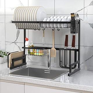 シンク上 水切りラック2段 食器 水切りかご 台所用品ホルダ キッチン収納 箸立て ディッシュラックまな板立て ステンレス製 スナップ式荷役 滑り止め吸盤 大容量 耐荷重40kg 幅:65CM 85CM (65cm)