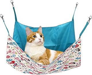 猫 ハンモック Blueekin ネコ ハンモック ペット ベッド 通気性 遊び場 昼寝 日向ぼっこ 夏冬両用 耐荷重10KG 大型 65cm x 65cm (ブルー)