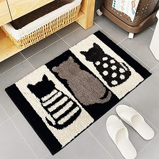 玄関マットSYitong バスマット浴槽マット 屋内 室内 用 滑り止め 付き泥落とし ふわふわ 洗える 吸水 柔らかい 折りたたみ可能45×65cm 50×80cm モノクロ (猫柄, 45×65cm)