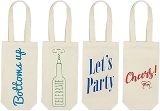 Wine Tote Bags - 4-Pack Wine Carrying Bag Set, Ideal Bottle Gift Bags, Travel Storage Bags, Picnic Wine Accessories, 4 Fun, Unique Designs - 6.5 x 31cm x 7.1cm