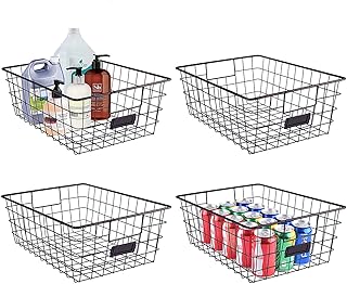 Shop Again ワイヤーバスケット 4個パック メタルワイヤーフードストレージオーガナイザー キッチンキャビネット パントリー/バスルーム/ランドリールーム/クローゼット/ガレージ用 ブラック