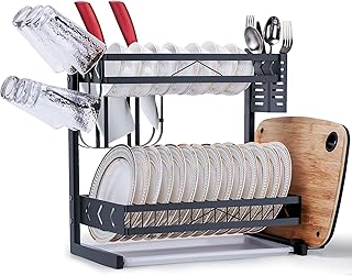 Sunny Living 食器乾燥ラック ステンレススチール キッチンカウンター用 2段ディッシュラック 水切りボード付き 錆防止用具ホルダー ディッシュドレイン ブラック