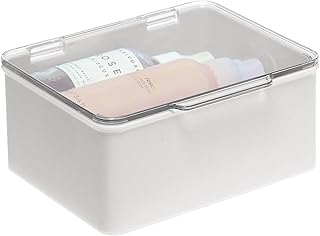 mDesign プラスチック製 積み重ね可能 スクエア型収納容器 引き出しオーガナイザー 安全な蓋付き コンテナボックス ヘアブラシ コーム スプレー ネイル用品 化粧品 ブレンダーの整理に ライトグレー/クリア