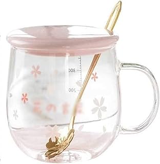 ショットグラス 耐熱ガラスカップ、日本の桜のカップ、目盛り付きオートミールカップ、オフィスマグ、クリエイティブフラワーティーカップ、桜型のスプーンで (Color : Clear-Cup, Size : C 400ml)
