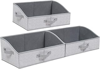 KEEGH クローゼット収納バスケット 折りたたみ式収納容器 棚 台形 ファブリックオーガナイザー ボックス バスケット ハンドル付き グレー 3個セット
