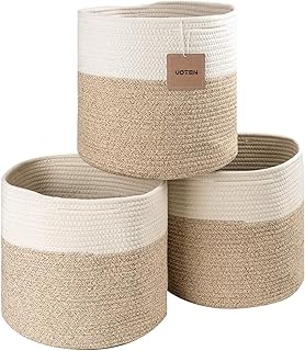 UBBCARE コットンロープ収納バスケット 3個セット 収納箱 オーガナイザー 装飾織バスケット 保育園 赤ちゃん服 玩具 メイクアップ 本 タオル 15インチ×10インチ×9インチ CSB-LI9006/WSH759