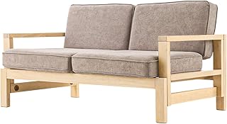 モダンデコ ソファ 2人掛け 【保証1年間】 おしゃれ 北欧 ウッド 肘掛け コンパクト (ライトベージュ)