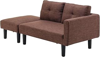 モダンデコ カウチソファ 2人掛け 【保証1年間】 ソファベッド 北欧 スツール オットマン I字 コンパクト (ダークブラウン)