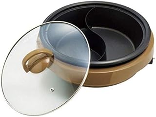 二色鍋 ガラス蓋付き ブラウン フッ素加工 電気二色鍋 卓上鍋