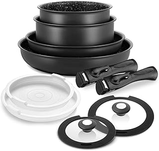 フライパンセット 鍋セット10点 ih対応 ガス適用 取っ手の取れる 16cm 18cm 22cm 26cm ガラス蓋付き 焦げ付かない 収納しやすい お手入れ簡単 暗灰色