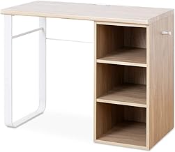 SoBuy 机 勉強机 ラック付き パソコンデスク ワークデスク 学習机 カウンターテーブル 幅101x奥行60cmx高さ76cm 頑丈 おしゃれ PCデスク オフィスデスク(FWT35-W/ホワイト)