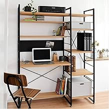 Hikker-link パソコンデスク ハイタイプ H字型 幅138cm 5+2段棚板 PCデスク デスク 机 オフィスデスク ワークデスク 学習机 勉強机 書斎机 作業机 在宅勤務 テレワーク メラミン化粧板 木製 本棚付き 収納付き ラック付き 一体型 省スペース 新生活応援 【1年間品質保証】ブラウン