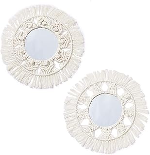 Okuna Outpost ボーホー マクラメ 壁掛けミラー ホームインテリア (13インチ 2パック)