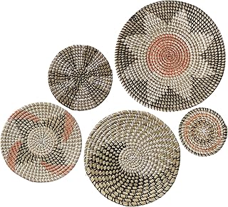 Yumkfoi 5ピース ウォールバスケット 装飾 ボーホー フラット ハンギングウーブンウォールバスケット 素朴なラウンド天然シーグラスウォールバスケット - クリスマスホリデーディスプレイに最適なギフトアイデア