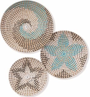 RATABOO ウィッカー ウォールバスケット 装飾 - 3個セット シーグラス織 ウォールバスケット 装飾 ボーホーフラット リビング 寝室 キッチン バスケット壁装飾収納 ユニークなウォールアート